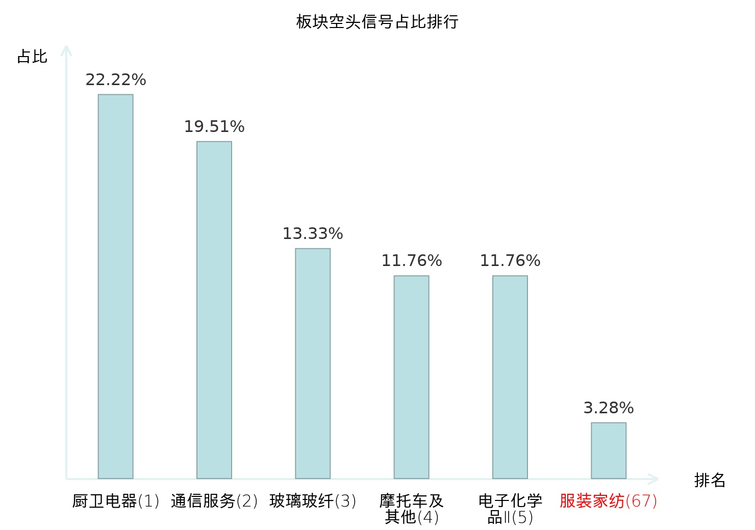 全市场所有行业板块中主力空头信号占比排名中,厨卫电器板块位居第一。家电零部件Ⅱ板块名次提升最快,较昨日上升121位。