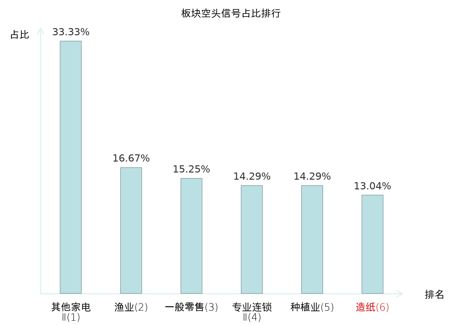 从主力宝信号数据分析,松炀资源所属的造纸板块中共3只股票发出主力空头信号,主力空头信号占比在全行业中排名第6位,较昨日上升115位。排名越高说明主力当日卖出意愿越强。全市场所有行业板块中主力空头信号占比排名中,其他家电Ⅱ板块位居第一;造纸板块名次提升最快,较昨日上升115位。这些变动反映了主力资金在造纸板块的卖出意愿增强,为投资者提供了当前市场情绪和潜在风险的重要参考。
