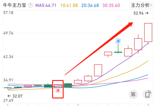 盘中题材异动时,结合近期主力进场和加仓个股,同时均线多头排列个股,如图:在题材异动时,选择均线向上加前期有主力进场的个股。