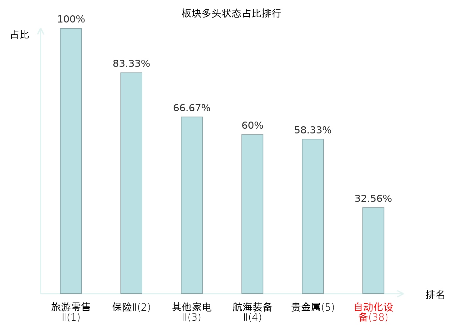 全市场所有行业板块中主力多头状态占比排名中,旅游零售Ⅱ板块位居第一。综合Ⅱ板块名次提升最快,较昨日上升69位。