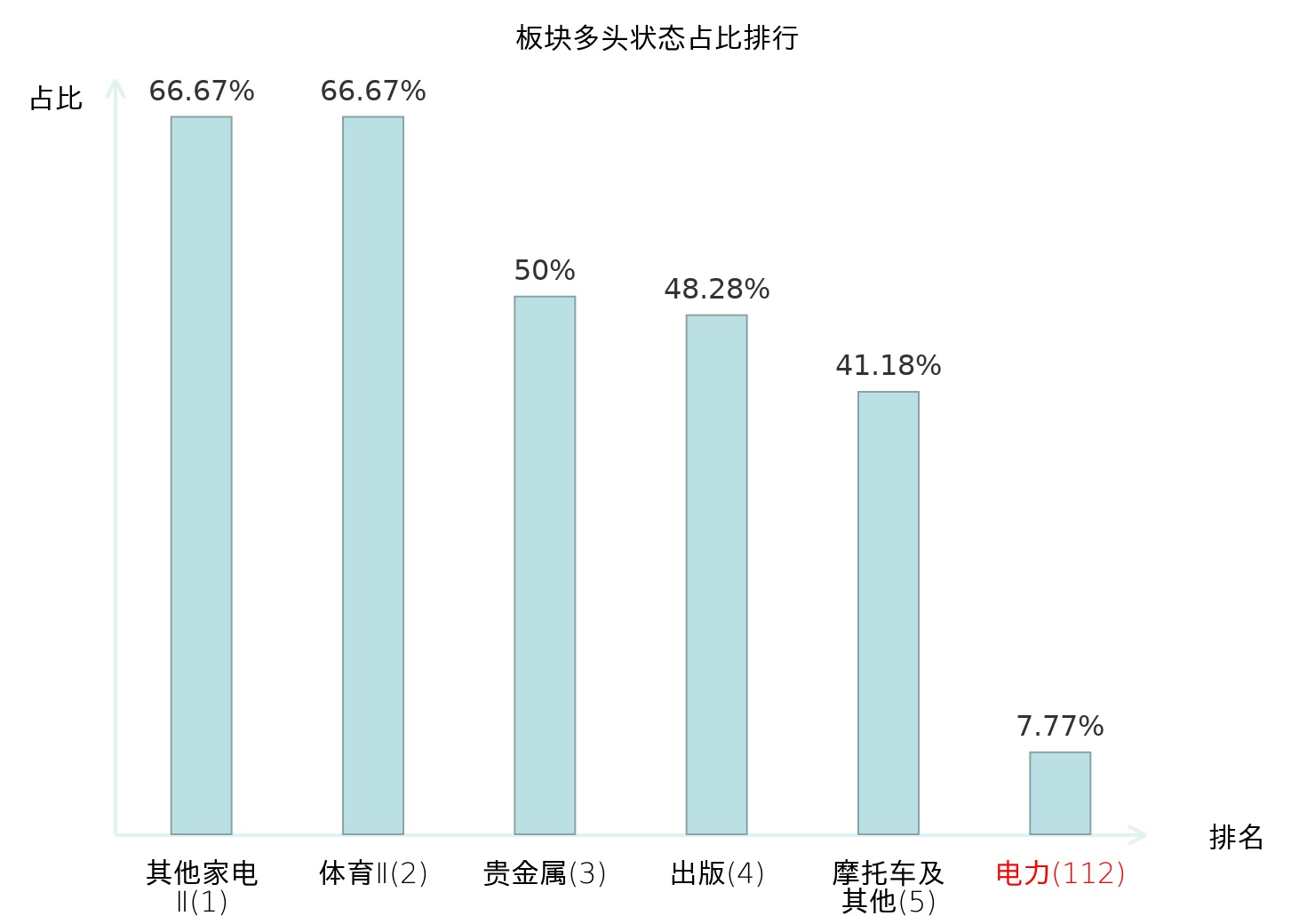 全市场所有行业板块中主力多头状态占比排名中,其他家电Ⅱ板块位居第一。乘用车板块名次提升最快,较昨日上升81位。
