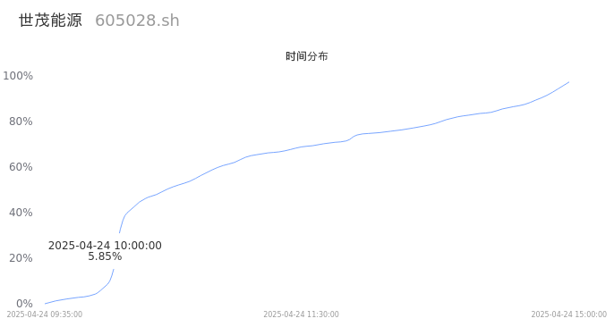 605028世茂能源2025年04月24日成交5.84万手,成交金额1.00亿,相较昨日放量4.33万手,换手率3.65%,成交清淡。