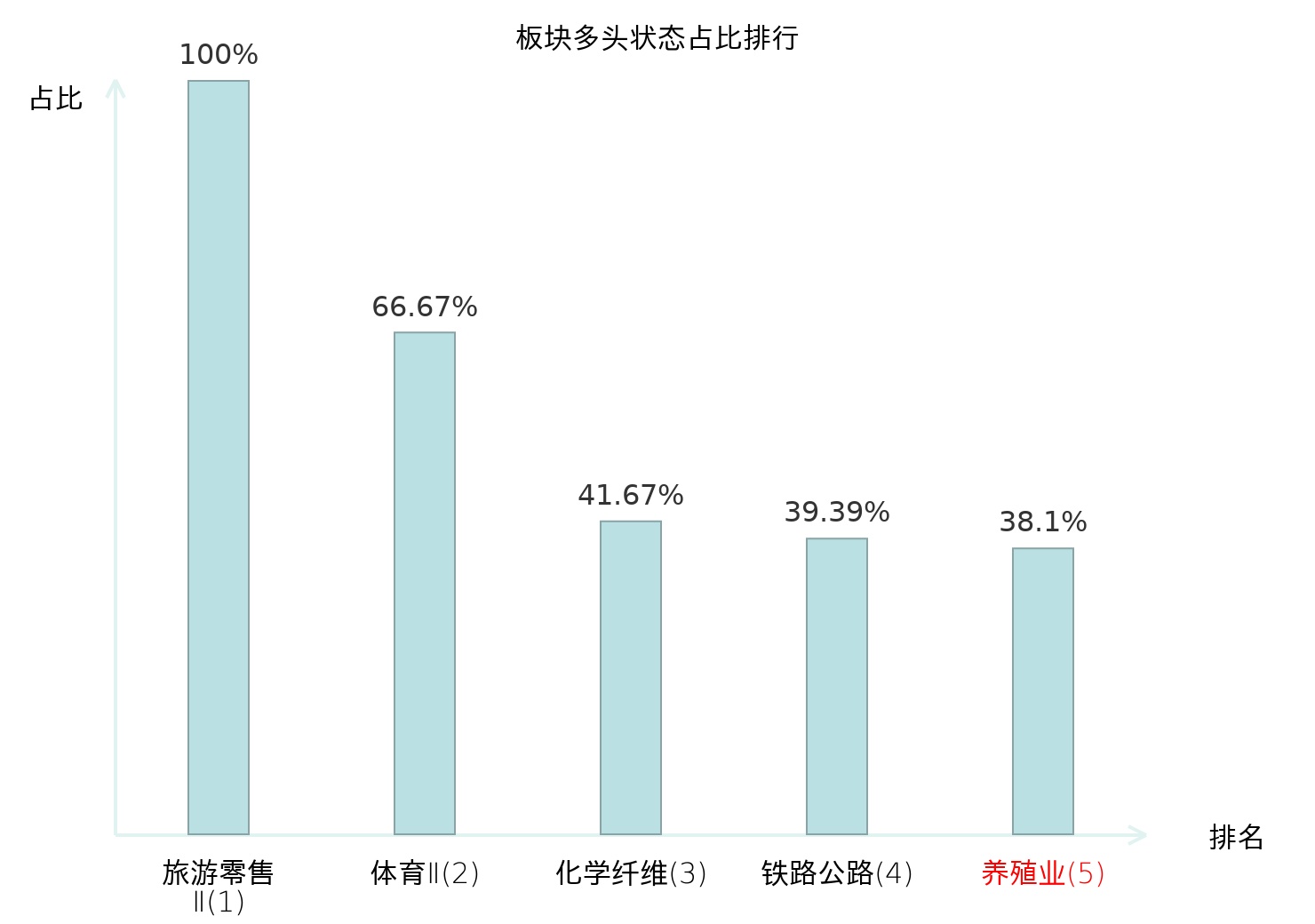 全市场所有行业板块中主力多头状态占比排名中,旅游零售Ⅱ板块位居第一。旅游零售Ⅱ板块名次提升最快,较昨日上升130位。