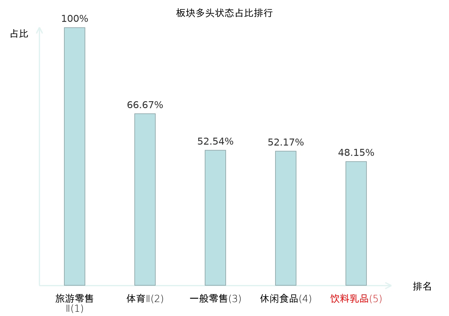 全市场所有行业板块中主力多头状态占比排名中,旅游零售Ⅱ板块位居第一。农业综合Ⅱ板块名次提升最快,较昨日上升109位。
