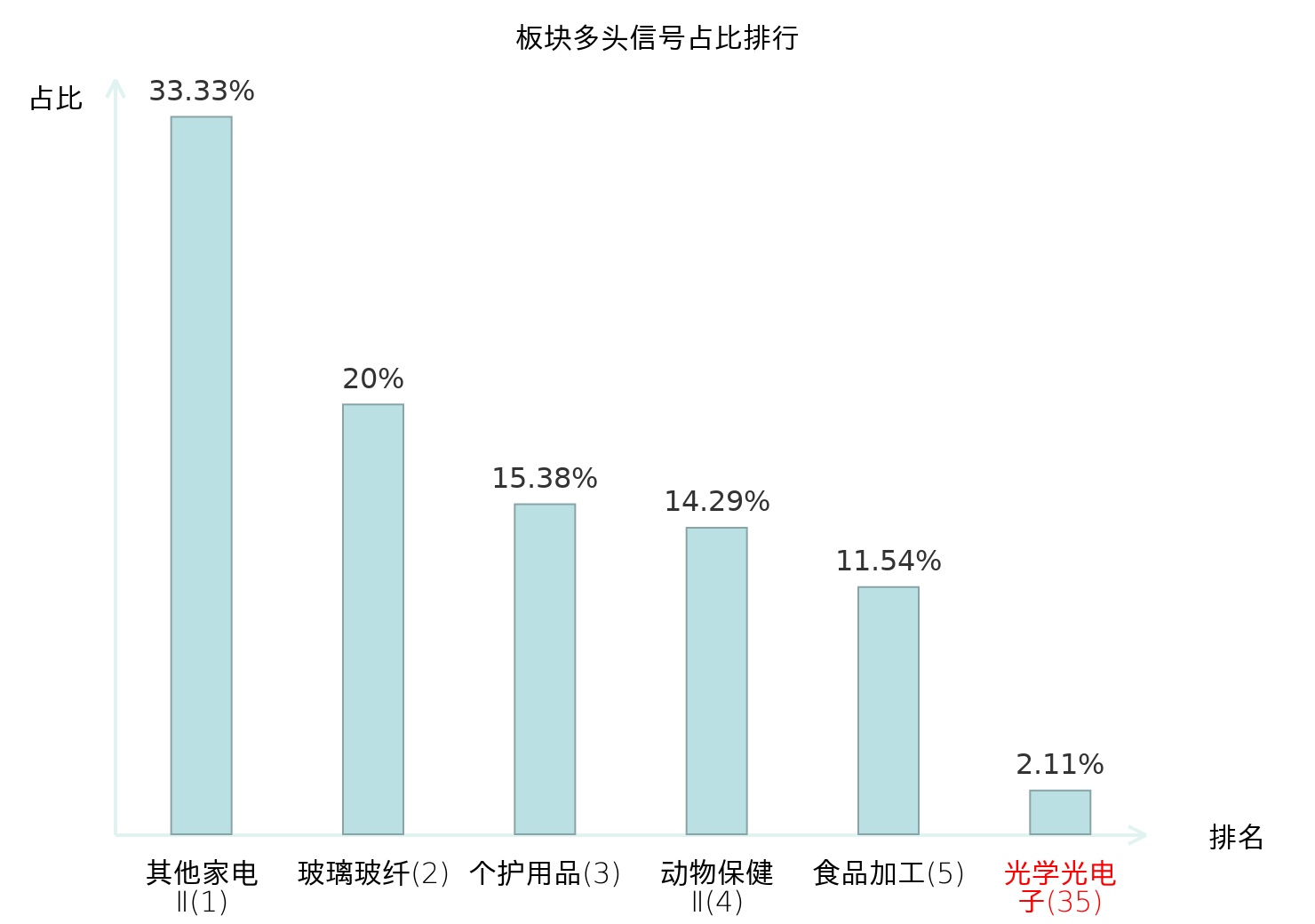 从主力宝信号数据分析,冠石科技所属的光学光电子板块中共有2只股票发出主力多头信号,主力多头信号占比在全行业中排名第35位,较昨日上升22位。较高的排名表明主力当日买入意愿较强,排名的上升可能反映了主力对这一板块的关注度增加。全市场所有行业板块中,其他家电Ⅱ板块的主力多头信号占比最高,位居第一。其他家电Ⅱ板块名次提升最快,较昨日上升128位。这些变动揭示了主力资金在不同行业间的流动趋势,为投资者提供了市场情绪和投资机会的重要线索。