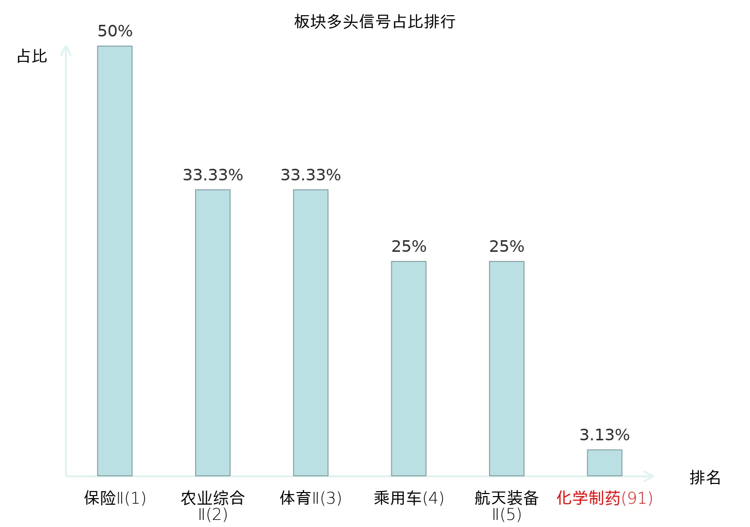 全市场所有行业板块中主力多头信号占比排名中,保险Ⅱ板块位居第一。体育Ⅱ板块名次提升最快,较昨日上升127位。