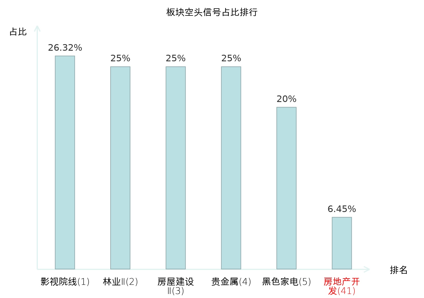 全市场所有行业板块中主力空头信号占比排名中,影视院线板块位居第一。普钢板块名次提升最快,较昨日上升115位。
