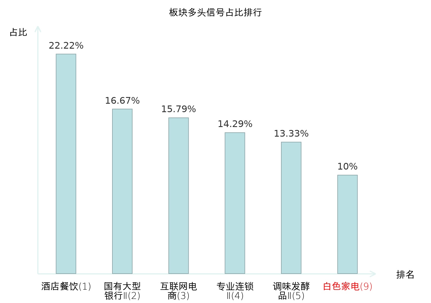 从主力宝信号数据分析,深康佳A所属的白色家电板块中共1只股票发出主力多头信号,主力多头信号占比在全行业中排名第9位,较昨日上升102位。排名的大幅上升表明主力对于该板块的买入意愿显著增强,为投资者提供了重要的市场信号。全市场所有行业板块中主力多头信号占比排名中,酒店餐饮板块位居第一;国有大型银行Ⅱ板块名次提升最快,较昨日上升121位。这些变动揭示了主力资金在不同行业间的偏好变化,为投资者理解市场动态提供了重要依据。