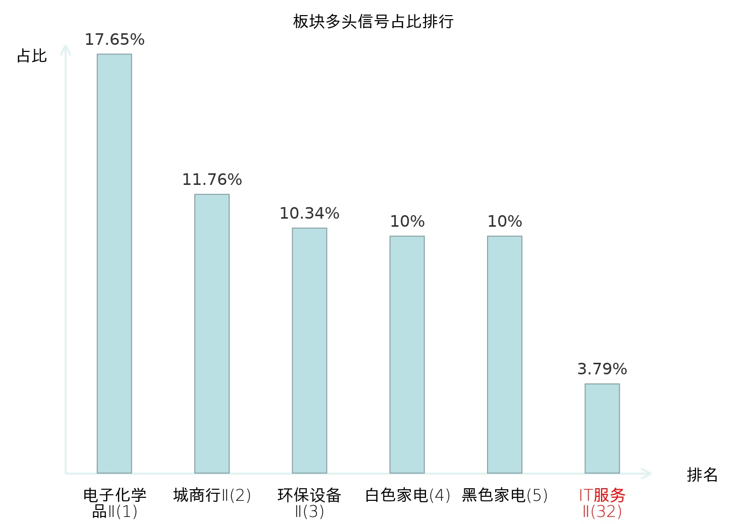 全市场所有行业板块中主力多头信号占比排名中,电子化学品Ⅱ板块位居第一。航海装备Ⅱ板块名次提升最快,较昨日上升109位。