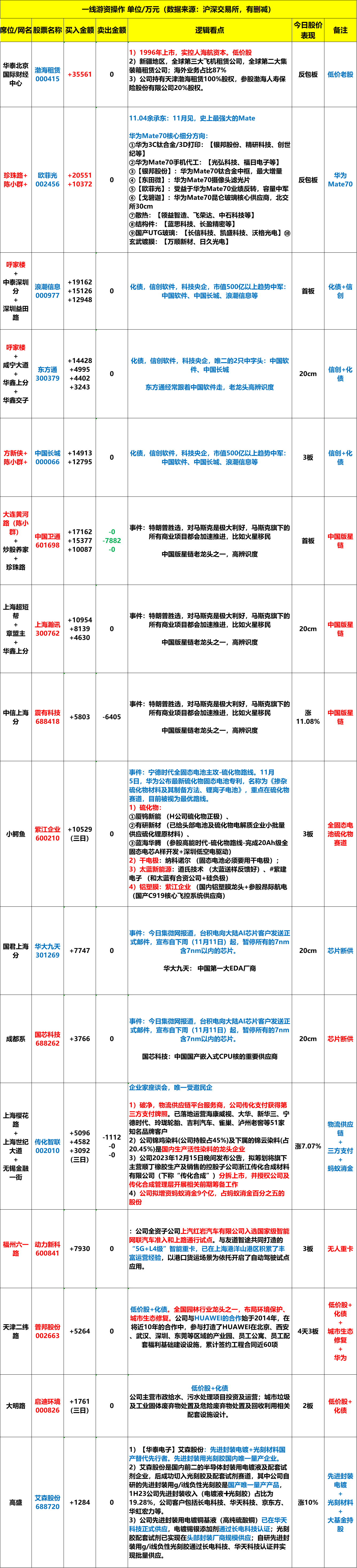2024年11月8日周五,龙虎榜解析。