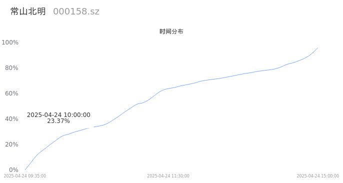 000158常山北明2025年04月24日成交55.93万手,成交金额11.35亿,相较昨日放量4.75万手,换手率3.52%,成交清淡。