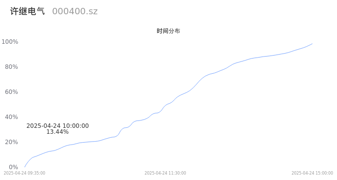 000400许继电气2025年04月24日成交26.98万手,成交金额6.00亿,相较昨日放量16.21万手,换手率2.68%,成交清淡。