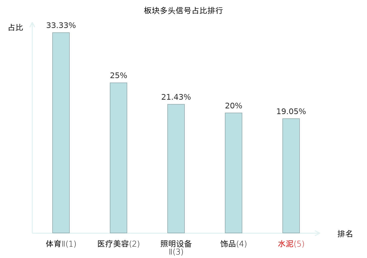 全市场所有行业板块中主力多头信号占比排名中,体育Ⅱ板块位居第一。医疗美容板块名次提升最快,较昨日上升126位。