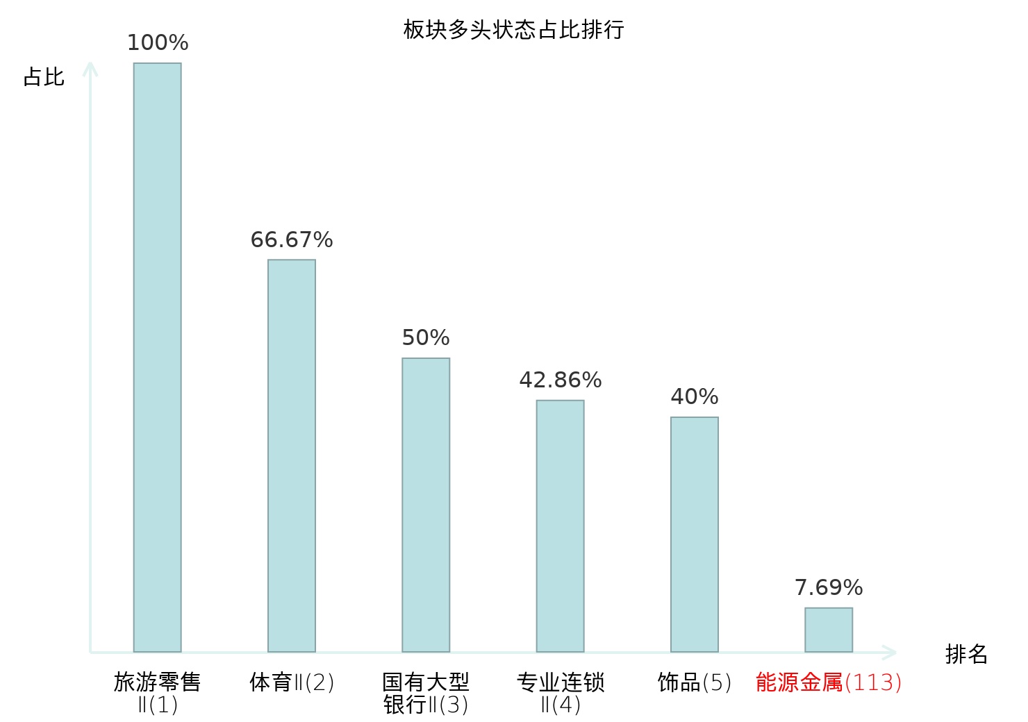 全市场所有行业板块中主力多头状态占比排名中,旅游零售Ⅱ板块位居第一。半导体板块名次提升最快,较昨日上升78位。
