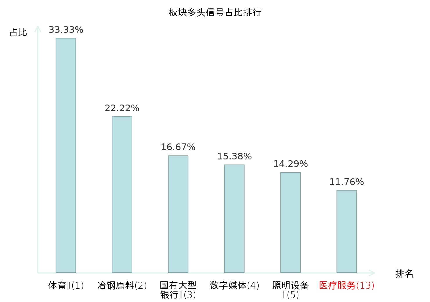 全市场所有行业板块中主力多头信号占比排名中,体育Ⅱ板块位居第一。体育Ⅱ板块名次提升最快,较昨日上升129位。