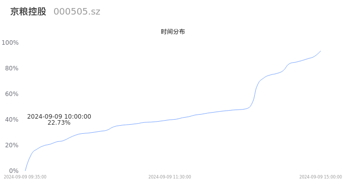 000505京粮控股2024年09月09日成交20.35万手,成交金额1.12亿,相较昨日缩量5.38万手,换手率3.22%,成交清淡。