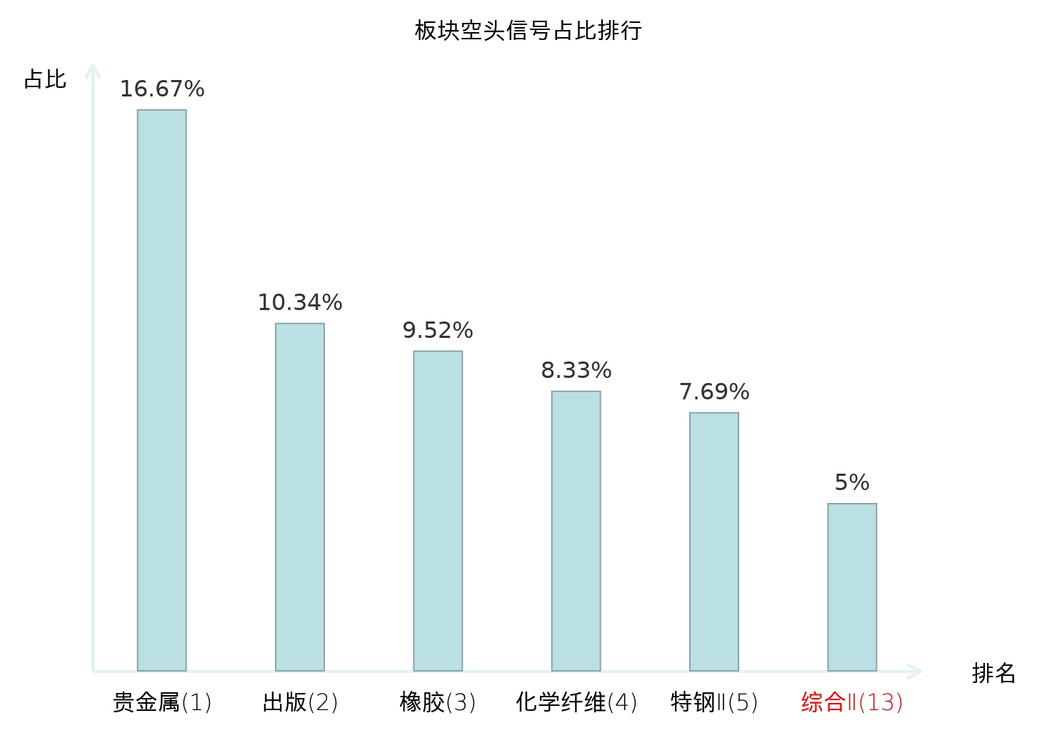 全市场所有行业板块中主力空头信号占比排名中,贵金属板块位居第一。环境治理板块名次提升最快,较昨日上升111位。