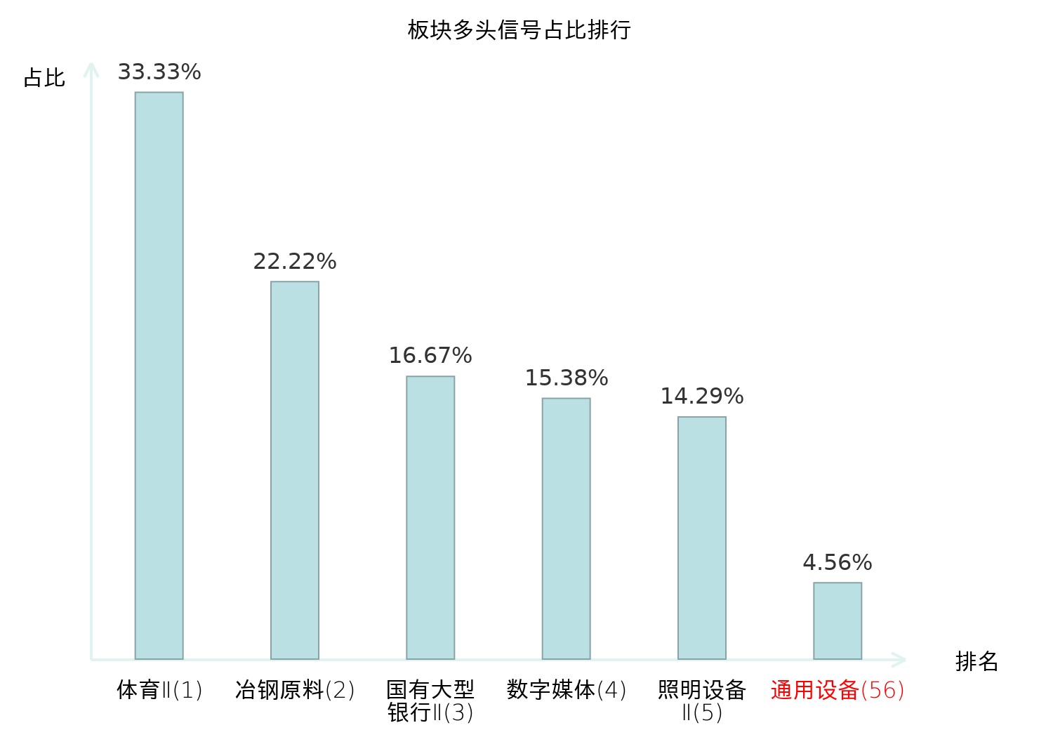 全市场所有行业板块中主力多头信号占比排名中,体育Ⅱ板块位居第一。体育Ⅱ板块名次提升最快,较昨日上升129位。