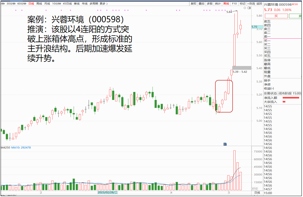 对很多股友来说,固废处理相对冷门。但兴蓉环境的走势,却蕴藏着强势股的奥秘。通过K线推演不难发现,该股在突破箱体的时候,出现典型的步步登高形态,低吸或许就是最佳的出手方式。