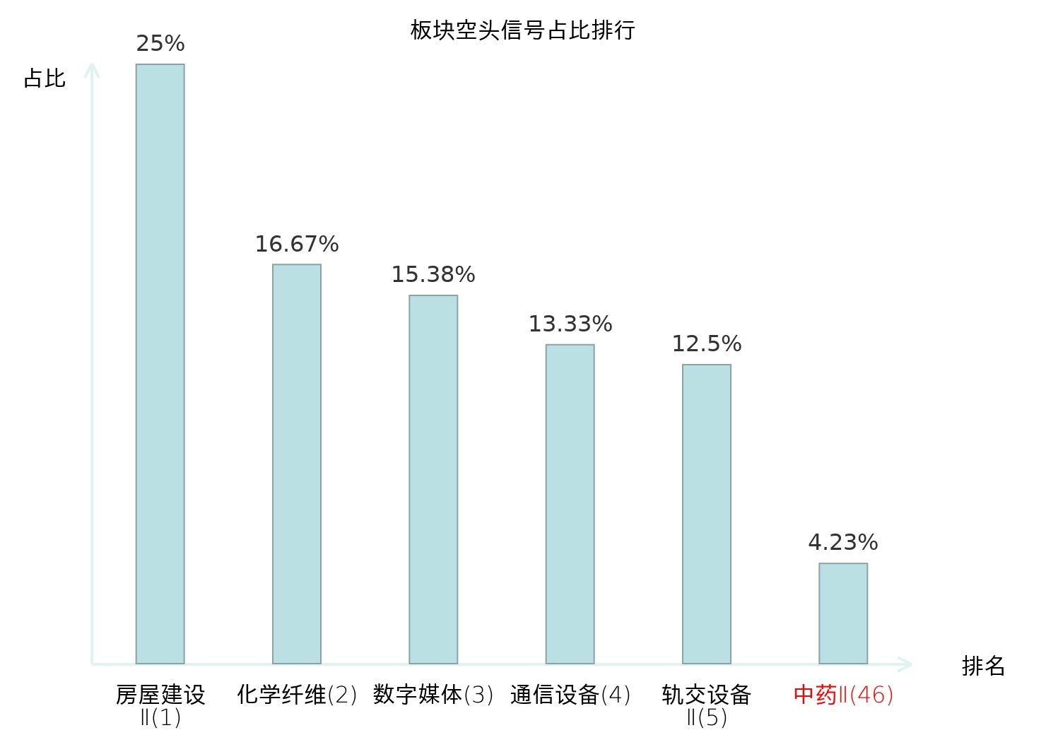 全市场所有行业板块中主力空头信号占比排名中,房屋建设Ⅱ板块位居第一。元件板块名次提升最快,较昨日上升112位。