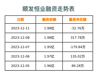 点击查看顺发恒业融资融券详细数据融资走势表