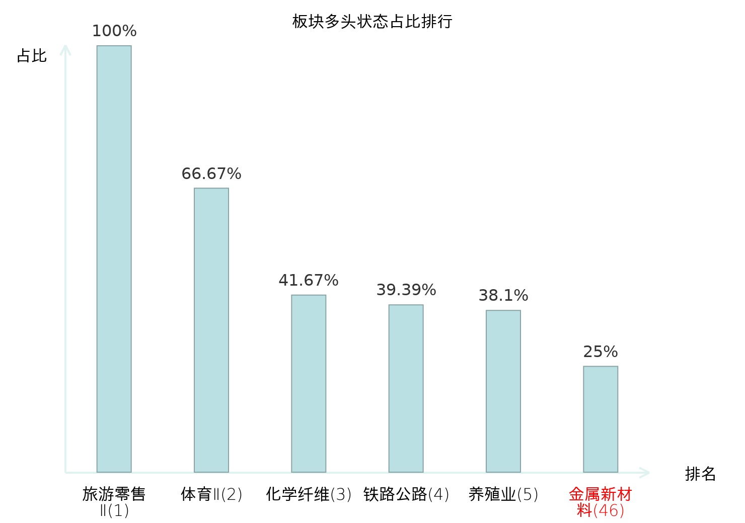 从主力宝信号数据分析,合金投资所属的金属新材料板块中共有8只股票处于主力多头状态,主力多头状态占比在全行业中排名第46位,较昨日下降14位;排名较高表明主力对于该板块整体看多意愿较强,此次排名下降可能反映了主力对该板块态度的微调。全市场所有行业板块中,旅游零售Ⅱ板块的主力多头状态占比最高,位居第一;旅游零售Ⅱ板块名次提升最快,较昨日上升130位;这些变动揭示了不同行业间主力资金偏好的变化,为投资者理解市场动态和潜在投资机会提供了重要线索。