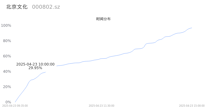 000802北京文化2025年04月23日成交12.31万手,成交金额5256.60万,相较昨日缩量7698手,换手率1.72%,成交清淡。