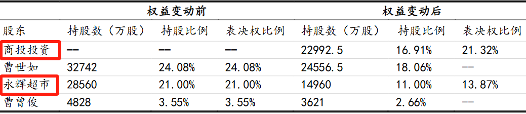 红旗连锁:实控人变为四川国资委,股东拥有丰富农产品资源。2023年12月21 日公司实际控制人曹世如女士及其一致行动人曹曾俊先生,以及股东永辉超市与私四川商投投资签署《股份转让协议》,转让价格为5.88元/股,同时曹世如和曹曾俊承诺在弃权期限内放弃其合计所持红旗连锁剩余的20.72%股份的表决权。2024年11月12日,证券过户完成登记,公司控股股东变更为商投投资,实控人变为四川省国资委。此外根据协议,商投投资将有权向公司提名 4 名非独立董事候选人(含董事长人选)和 3 名独立董事候选人,并推荐副总经理、财务负责人和董事会秘书候选人。红旗连锁股东四川商投及四川乡村发展集团旗下拥有多家农副产品种植及加工企业,以及食品批发企业,有望与红旗连锁广泛的销售渠道相结合,实现业务间协同发展,并优化供应链运转效率,推动红旗连锁经营品类扩充的同时提高盈利水平。
