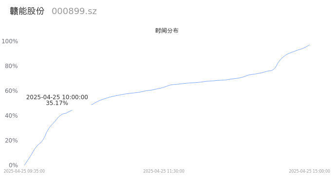 000899赣能股份2025年04月25日成交85.76万手,成交金额9.10亿,相较昨日放量2.21万手,换手率8.79%,成交清淡。