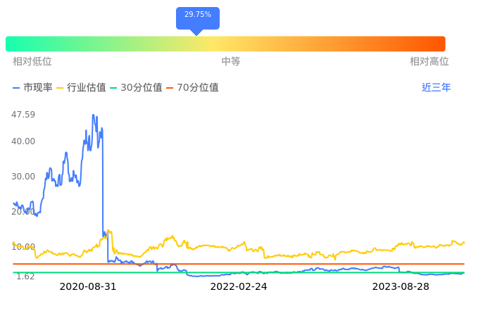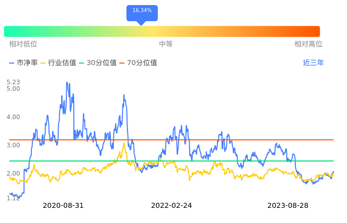 神火股份当前市净率PB为2.08,在所属的工业金属中,市净率PB排32,前五名分别为南山铝业市净率0.80、江西铜业市净率0.83、中孚实业市净率0.90、明泰铝业市净率1.05、万顺新材市净率1.10。神火股份当前市净率PB为2.08,超过近3年16.34%的历史数据。