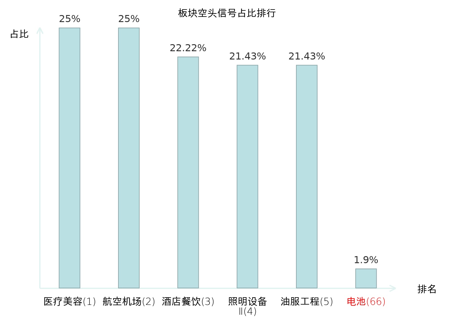 全市场所有行业板块中主力空头信号占比排名中,医疗美容板块位居第一。专业工程板块名次提升最快,较昨日上升108位。