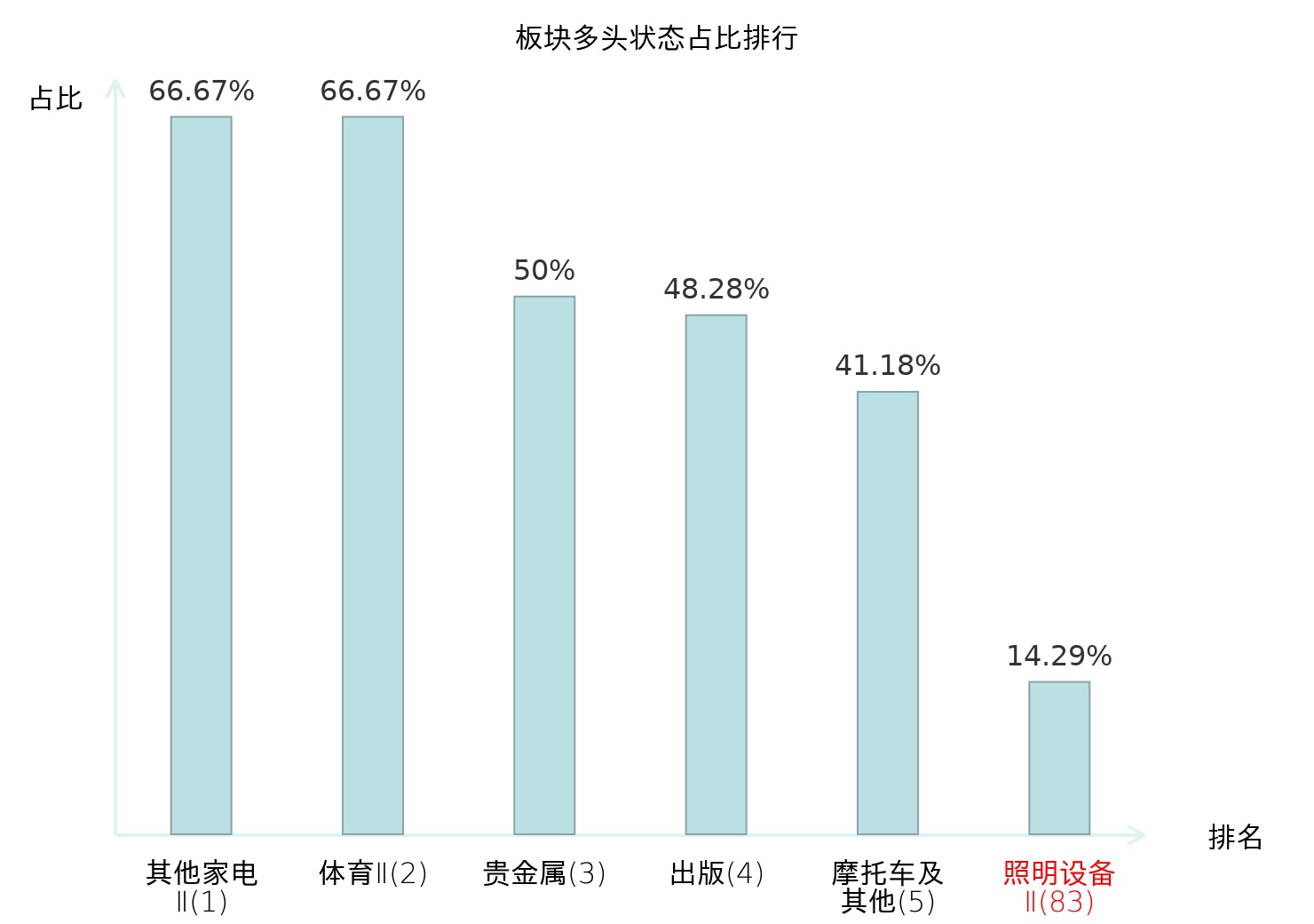 全市场所有行业板块中主力多头状态占比排名中,其他家电Ⅱ板块位居第一。乘用车板块名次提升最快,较昨日上升81位。