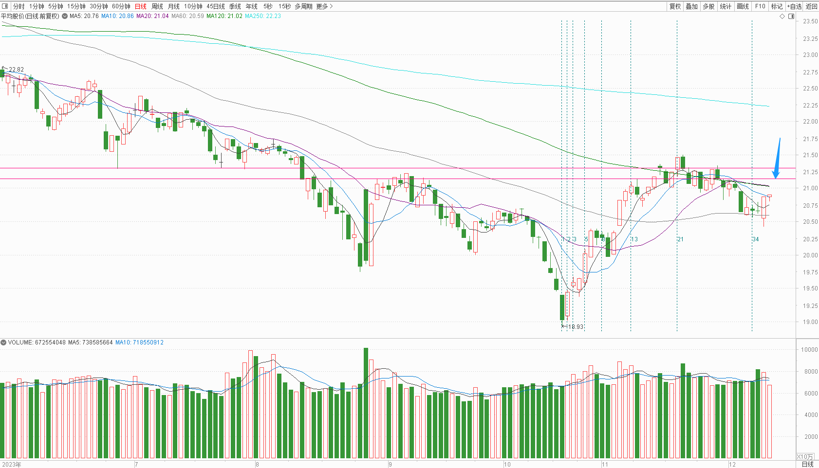 平均股价来看,走势也是类似,昨日金针探底之后,今日展开弱修复,短期来看,大概率还会维持震荡弱修复态势,想大跌不现实,但想涨也很难,毕竟,上方平台处就是重压区。