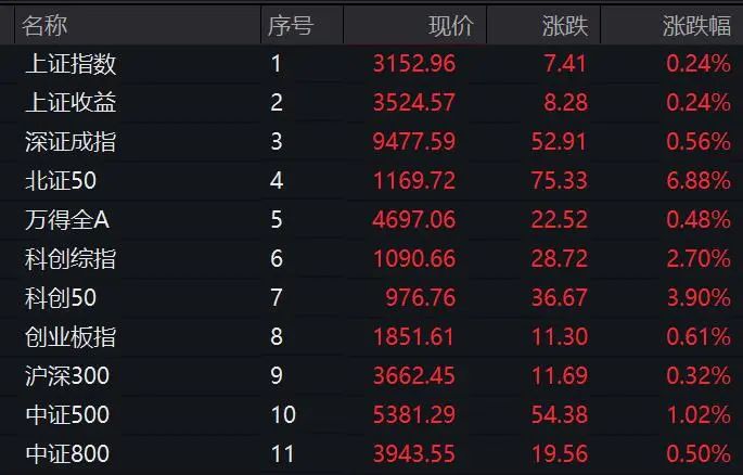 今日早盘,A股低开高走,科技成长股领涨,北证50指数一度飙升逾7%,科创50指数盘中也大涨超5%,临近午间收盘,上证50、沪深300亦发力上攻,市场成交呈放大趋势。
