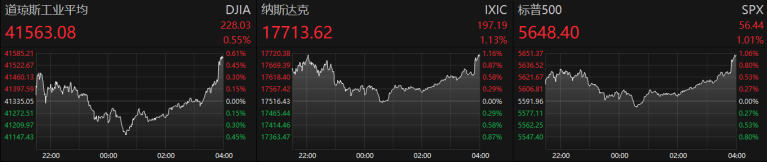 ►美股上周五收高。道指创历史新高,标普指数连续第四个月录得涨幅,亦逼近历史高位。美联储最青睐的核心PCE通胀指数上涨0.2%,显示通胀温和上升,强化了该行9月降息25个基点的预期。有金融机构甚至预计美联储在9月份将降息50个基点。截至收盘,道琼斯指数涨0.55%,刷新历史新高;纳斯达克指数涨1.13%,标普500指数涨1.01%,热门中概股多数上涨,纳斯达克中国金龙指数涨1.20%。