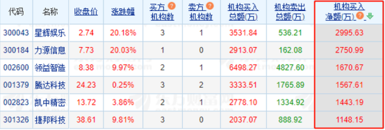 ►龙虎榜机构动向:8月30日,6股被机构净买入超1000万元,其中净买入星辉娱乐最多,为2995万元。