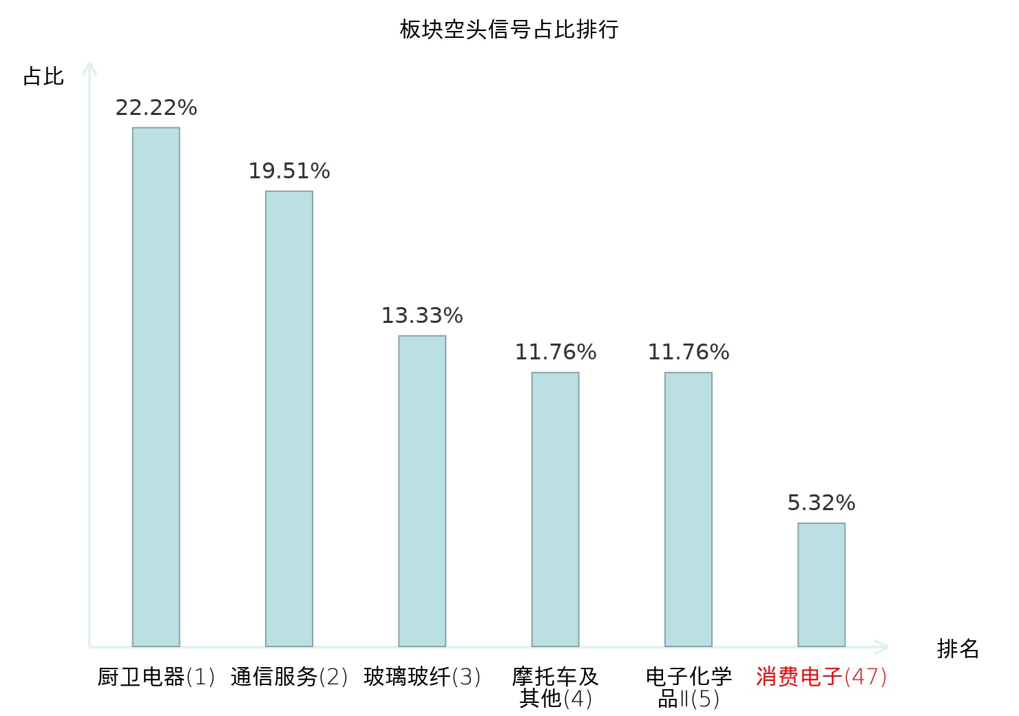 从主力宝信号数据分析,国光电器所属的消费电子板块中共5只股票发出主力空头信号,主力空头信号占比在全行业中排名第47位,较昨日上升84位。排名越高说明主力当日卖出意愿越强。全市场所有行业板块中,主力空头信号占比排名中,厨卫电器板块位居第一;家电零部件Ⅱ板块名次提升最快,较昨日上升121位。这些变动揭示了不同行业间主力资金偏好的变化,为投资者提供了关于市场情绪和潜在投资机会的重要参考。