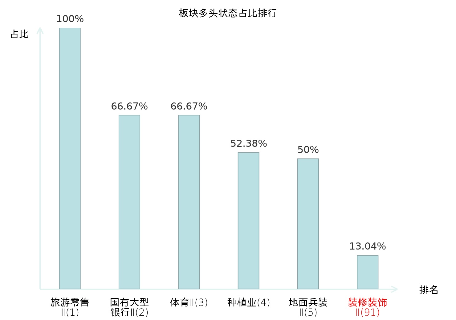 全市场所有行业板块中主力多头状态占比排名中,旅游零售Ⅱ板块位居第一。股份制银行Ⅱ板块名次提升最快,较昨日上升54位。