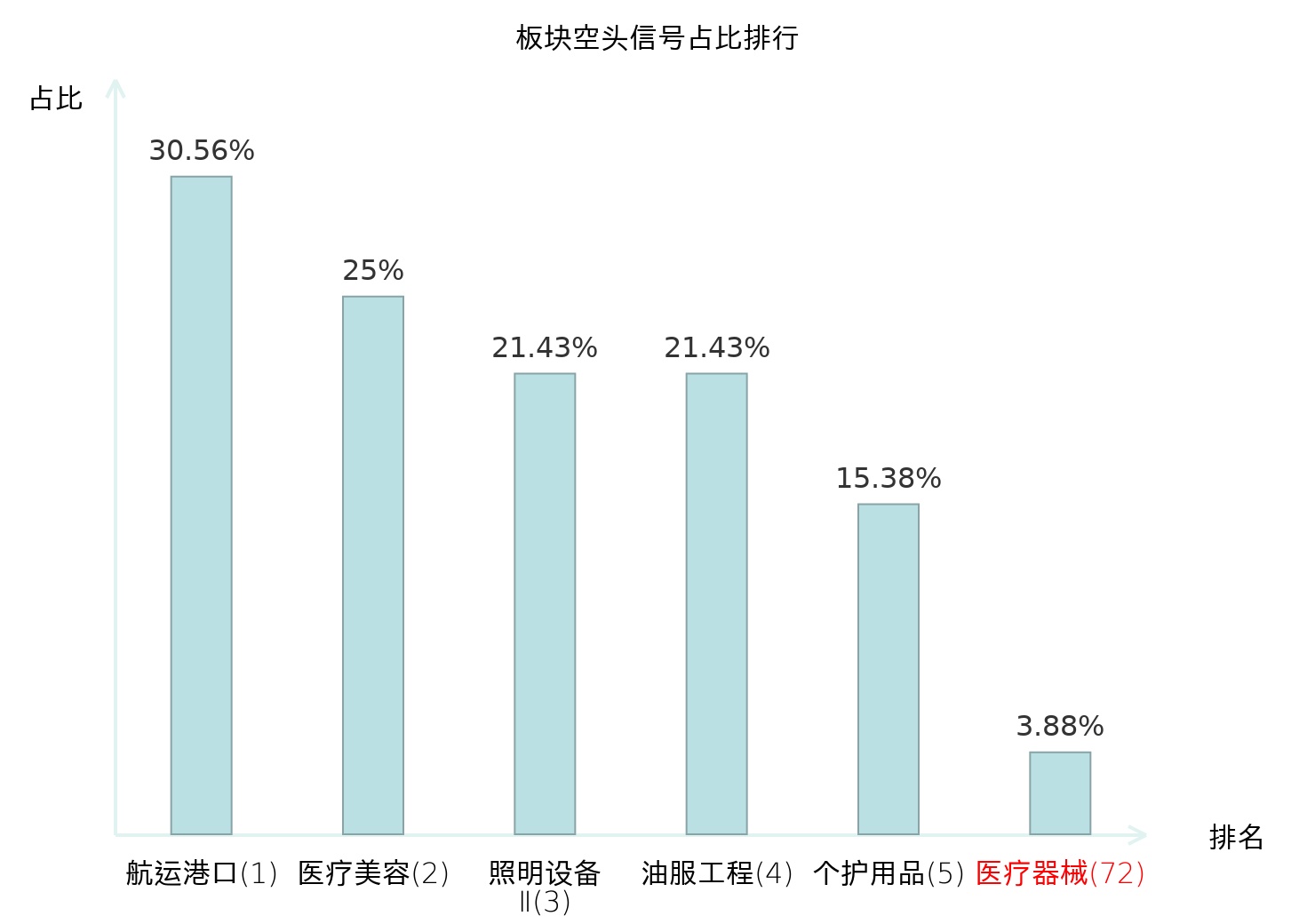 全市场所有行业板块中主力空头信号占比排名中,航运港口板块位居第一。航运港口板块名次提升最快,较昨日上升127位。