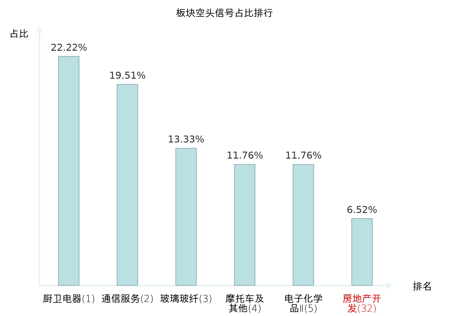 从主力宝信号数据分析,广宇集团所属的房地产开发板块中共6只股票发出主力空头信号,主力空头信号占比在全行业中排名第32位,较昨日下降13位。排名越高说明主力当日卖出意愿越强。全市场所有行业板块中主力空头信号占比排名中,厨卫电器板块位居第一;家电零部件Ⅱ板块名次提升最快,较昨日上升121位。这些变动揭示了不同行业间主力资金动向的趋势,为投资者提供了关于市场情绪和潜在投资机会的重要线索。