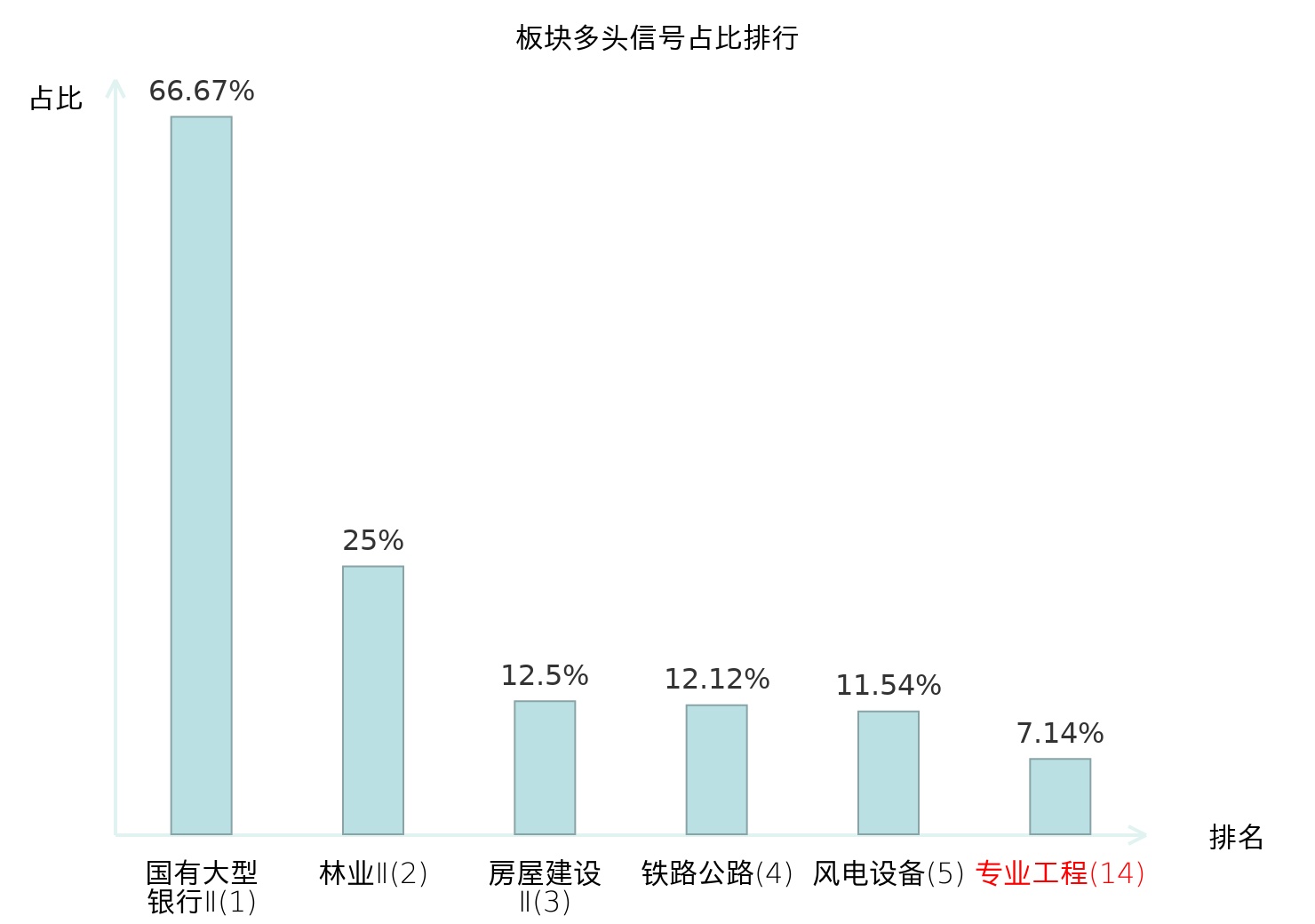 全市场所有行业板块中主力多头信号占比排名中,国有大型银行Ⅱ板块位居第一。林业Ⅱ板块名次提升最快,较昨日上升124位。