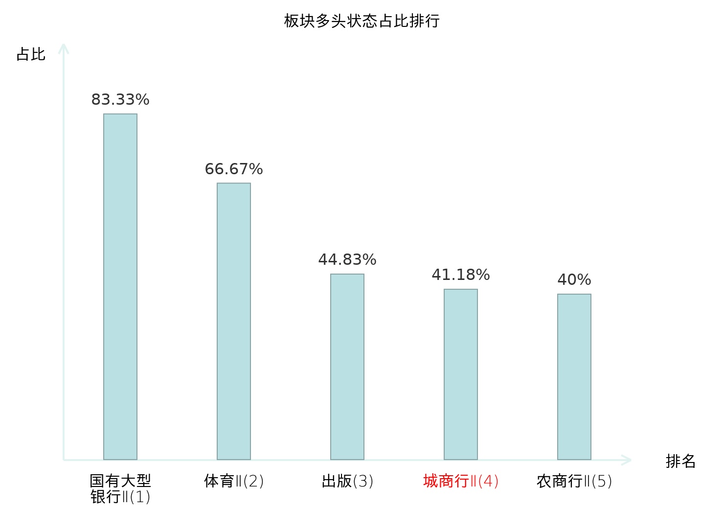 全市场所有行业板块中主力多头状态占比排名中,国有大型银行Ⅱ板块位居第一。焦炭Ⅱ板块名次提升最快,较昨日上升35位。