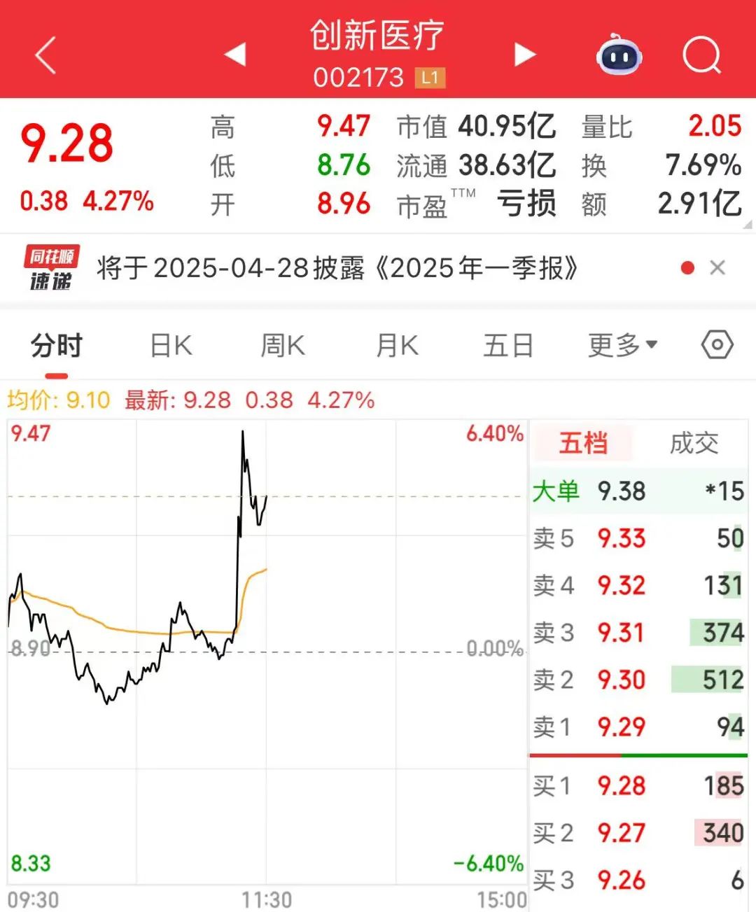 4月18日临近午间收盘,脑机接口概念股突然大幅拉升,创新医疗在11时14分左右,股价涨幅由不到1%,瞬间拉升至6%以上。诚益通南京熊猫岩山科技三博脑科爱朋医疗翔宇医疗等盘中均有明显上涨。