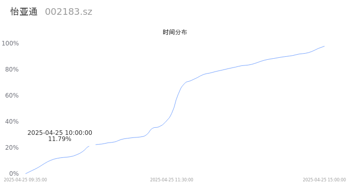 002183怡亚通2025年04月25日成交78.98万手,成交金额3.75亿,相较昨日放量27.20万手,换手率3.04%,成交清淡。
