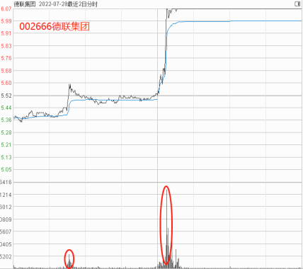 例:如下图002666德联集团7月29日的竞价量是292757,7月28日的爆量是96472。超过50%。当日竞价成功。