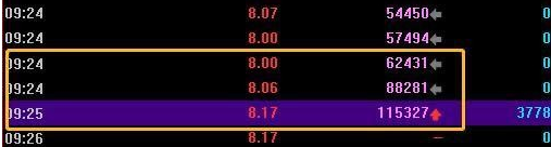 异动表现:9点25分成交的手数是9点24分的至少50%。假如9点24分成交手数为1000手,9点25分异动的表现则为1500手(1000+1000*50%)。这个值越大越好,最好大于100%。