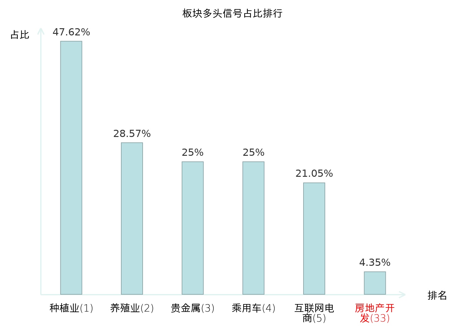 全市场所有行业板块中主力多头信号占比排名中,种植业板块位居第一。乘用车板块名次提升最快,较昨日上升115位。