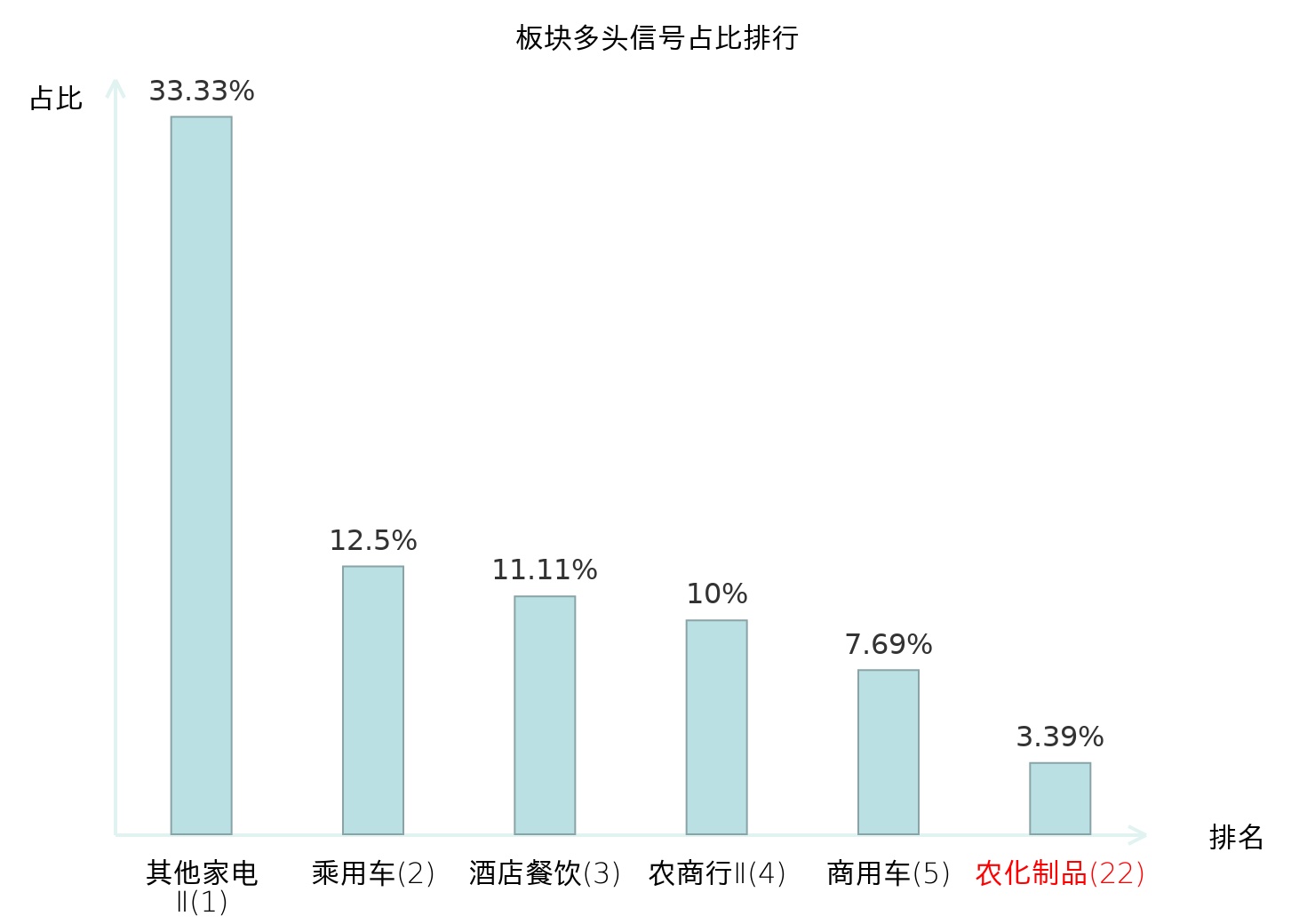 全市场所有行业板块中主力多头信号占比排名中,其他家电Ⅱ板块位居第一。其他家电Ⅱ板块名次提升最快,较昨日上升128位。
