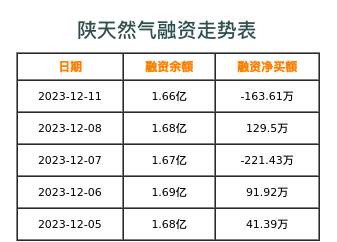 综上,陕天然气当前两融差额为1.65亿,近5个交易日累计下降1.29%