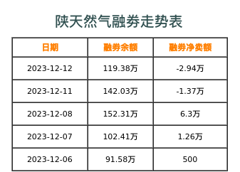 陕天然气融资融券信息显示,20231212融资融券余额为1.69亿,其中融资余额为1.68亿,融券余额为119.38万,融资买入额329.36万,融资偿还额为134.73万,融资净买入为194.63万,融资融券余额较上一个交易日同比增加1.03%